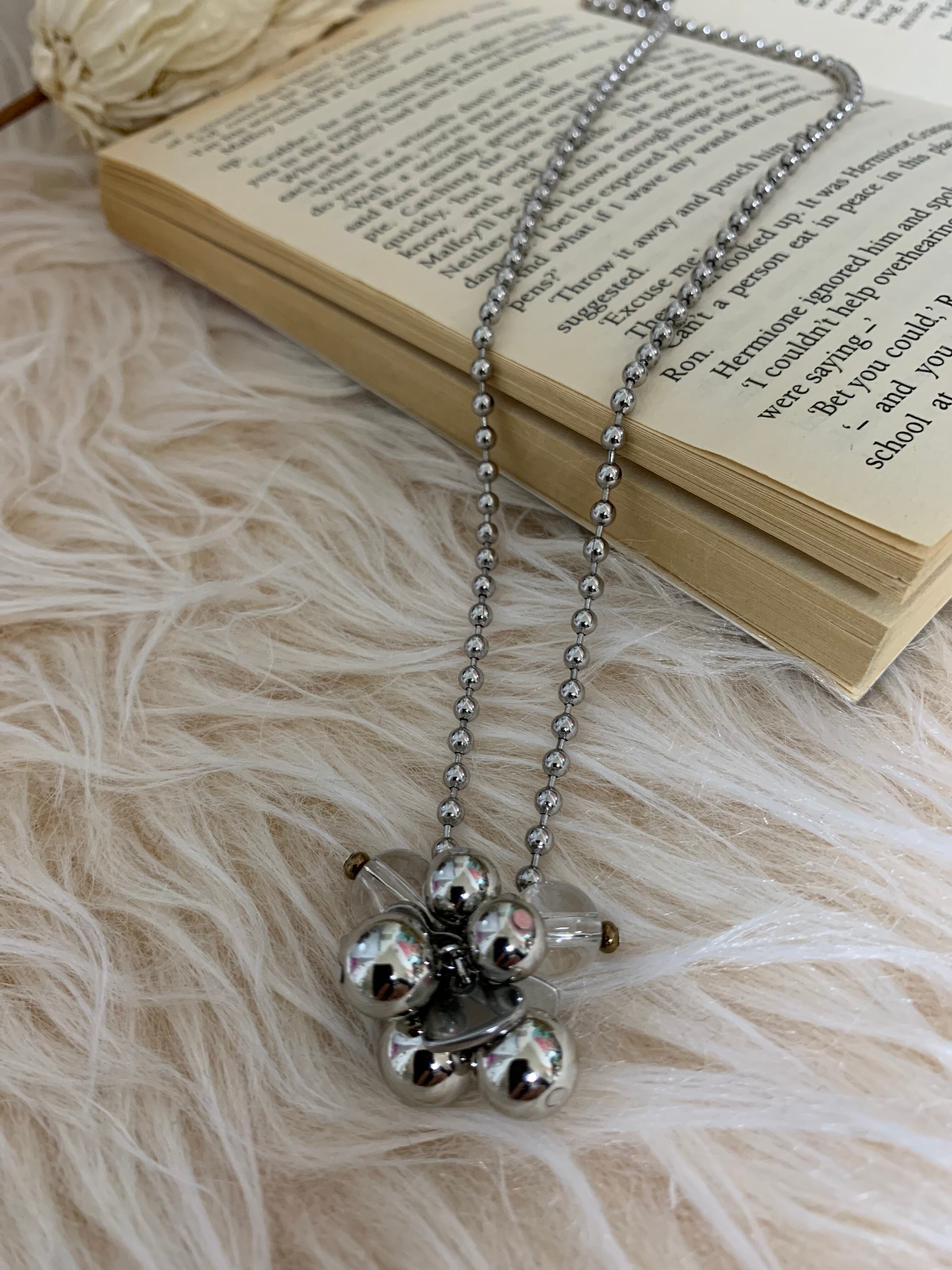 シルバーボールとアクリルボールの中にハートを詰め込んでボールチェーンで大人可愛いく仕上げました。