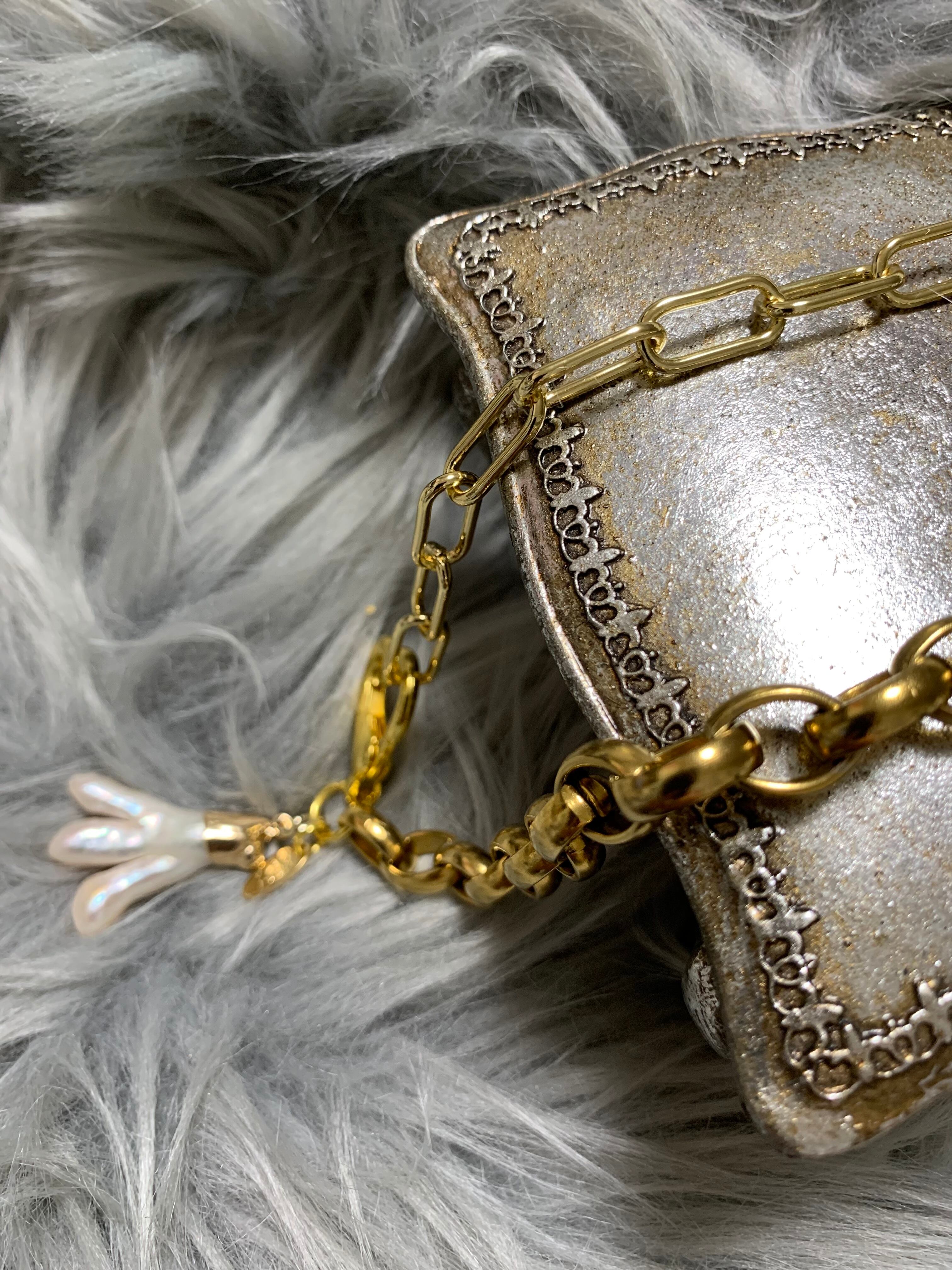 2種類のゴールドチェーンを組み合わせ、コロンと可愛いデザインの個性的なClawバロックパールを一粒アクセントにしました。
