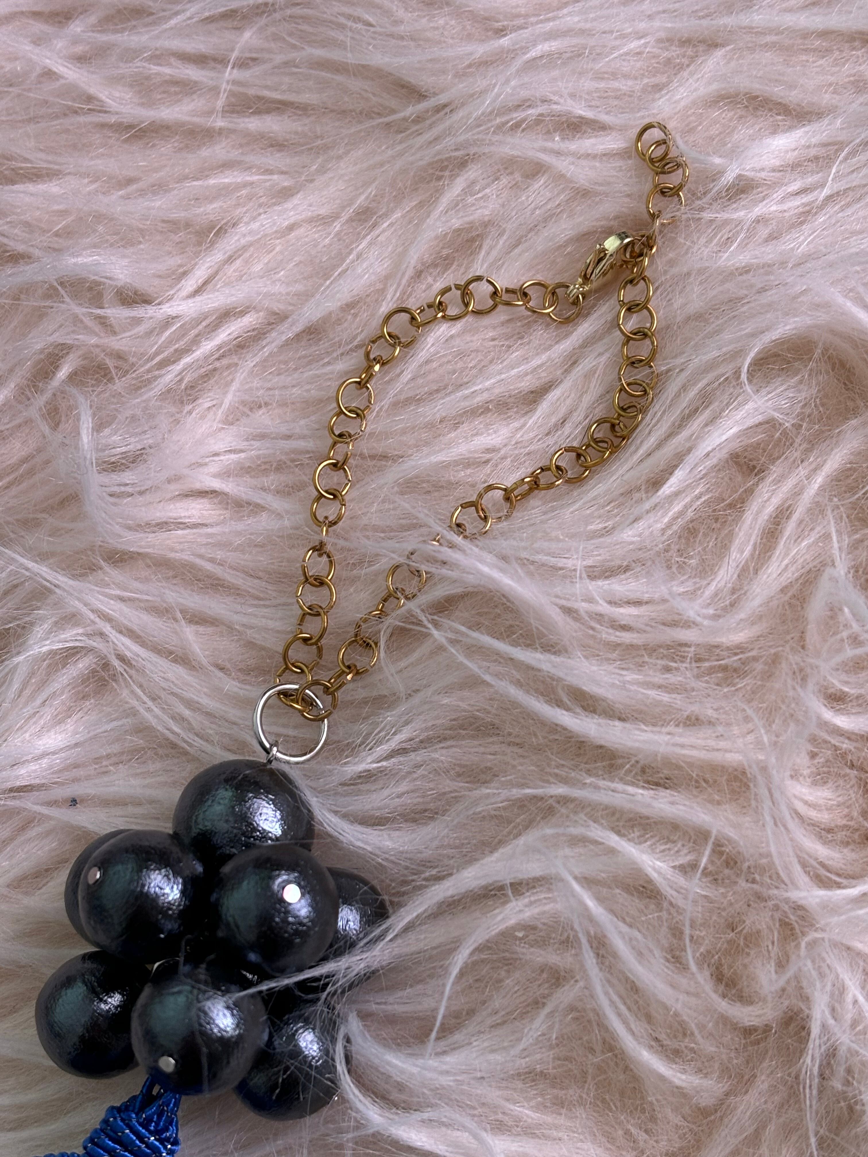 コットンパールつぶつぶチャームは、上品な輝きと可愛らしいデザインが特徴のバッグチャームです。手作り感溢れるつぶつぶのコットンパールチャームと、ボリューム感のあるタッセルが絶妙なバランスで組み合わさっています。シンプルながらも華やかさを演出する一品です。