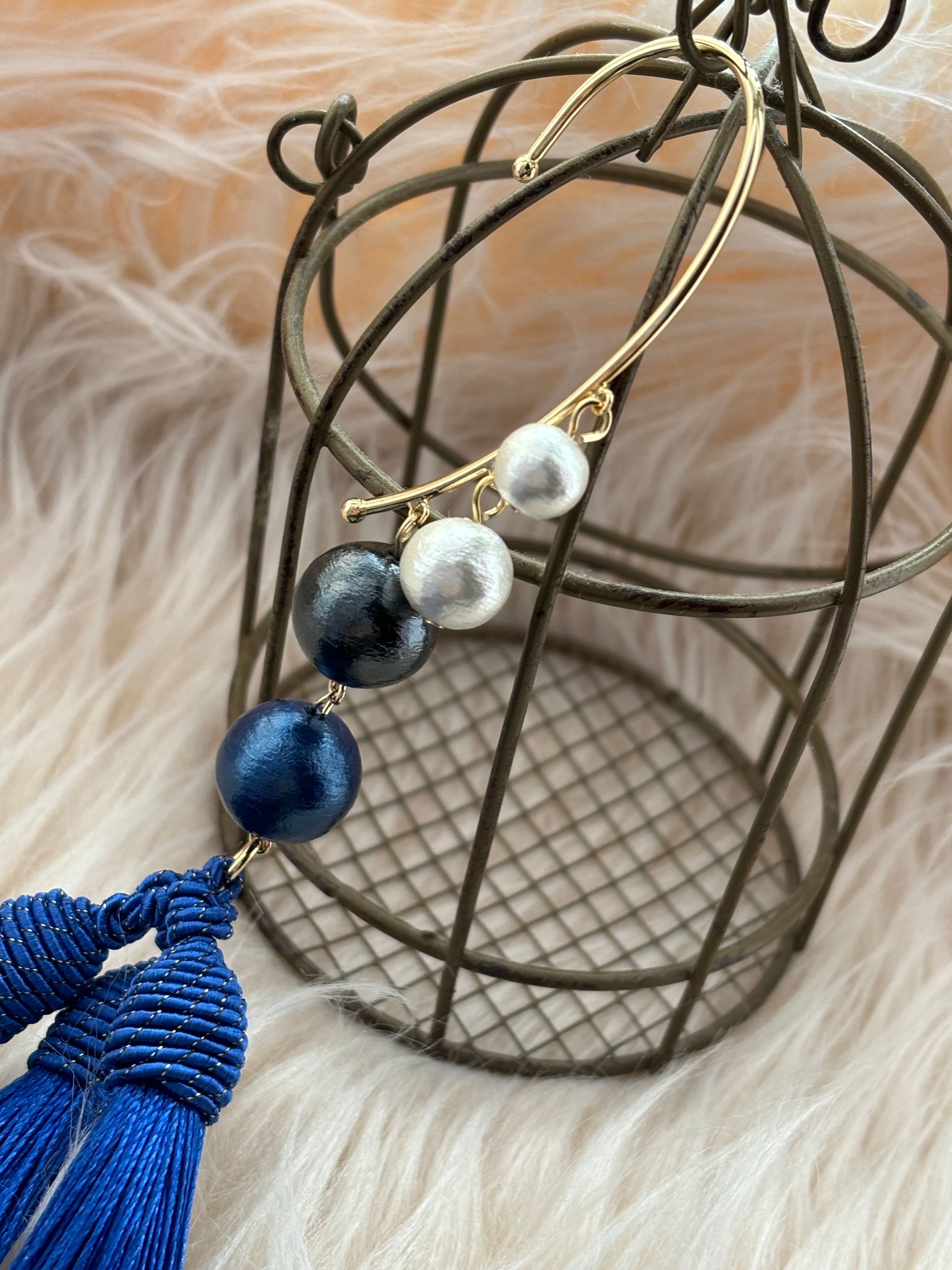 魅力満載のイヤーフックが新登場しました!このフックは、流れるようなラインと個性的なデザインが特徴で、耳元に洗練された印象を与えます。コットンパールとタッセルをあしらったデザインが、シンプルながらも存在感を引き立て、あなたのファッションに華やかさをプラスします。