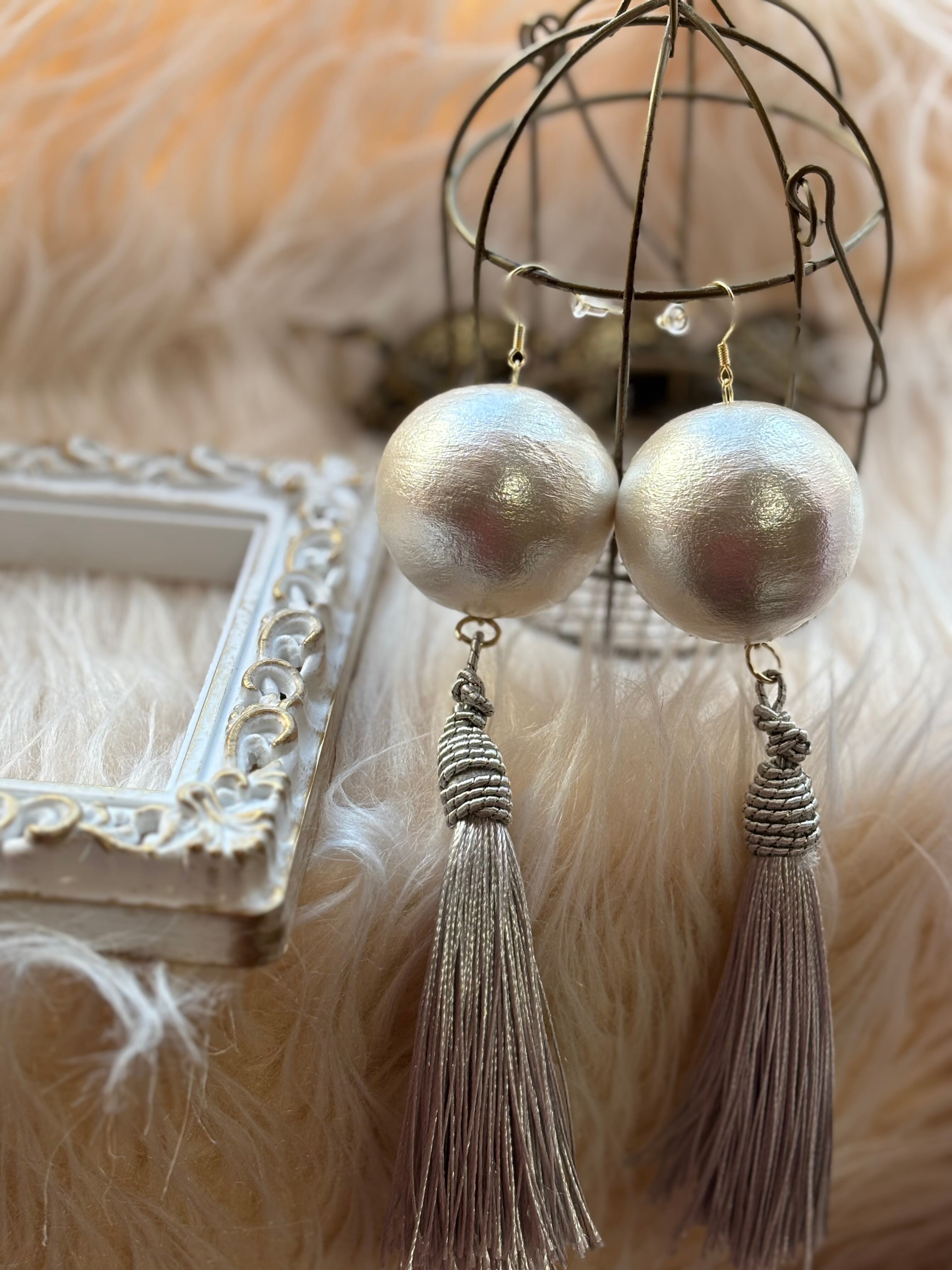 コットンパール (白)40ミリ玉✖️1, タッセル部分(シルバー)