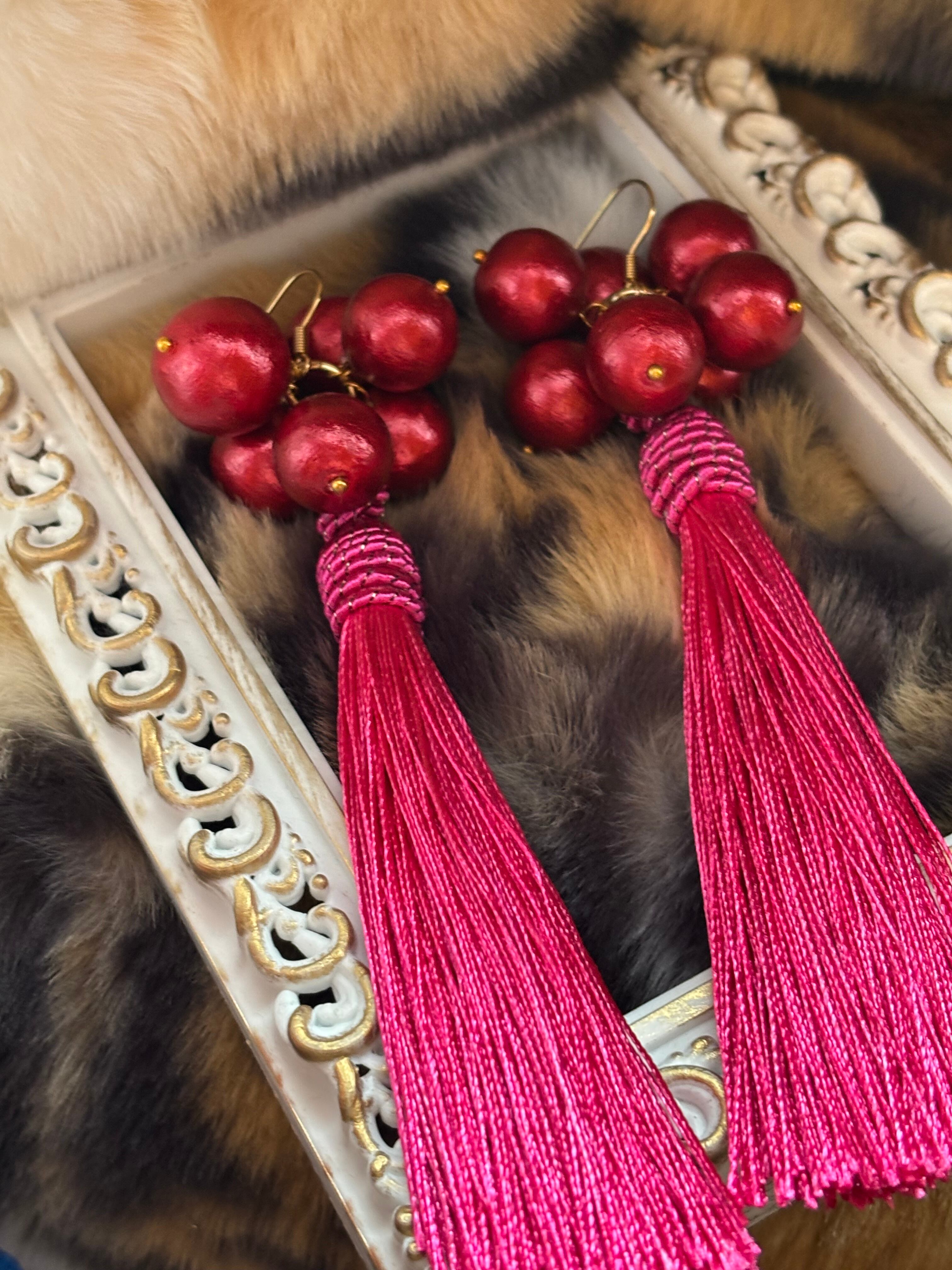 コットンパール14㎜玉(赤) 、ピンクタッセル